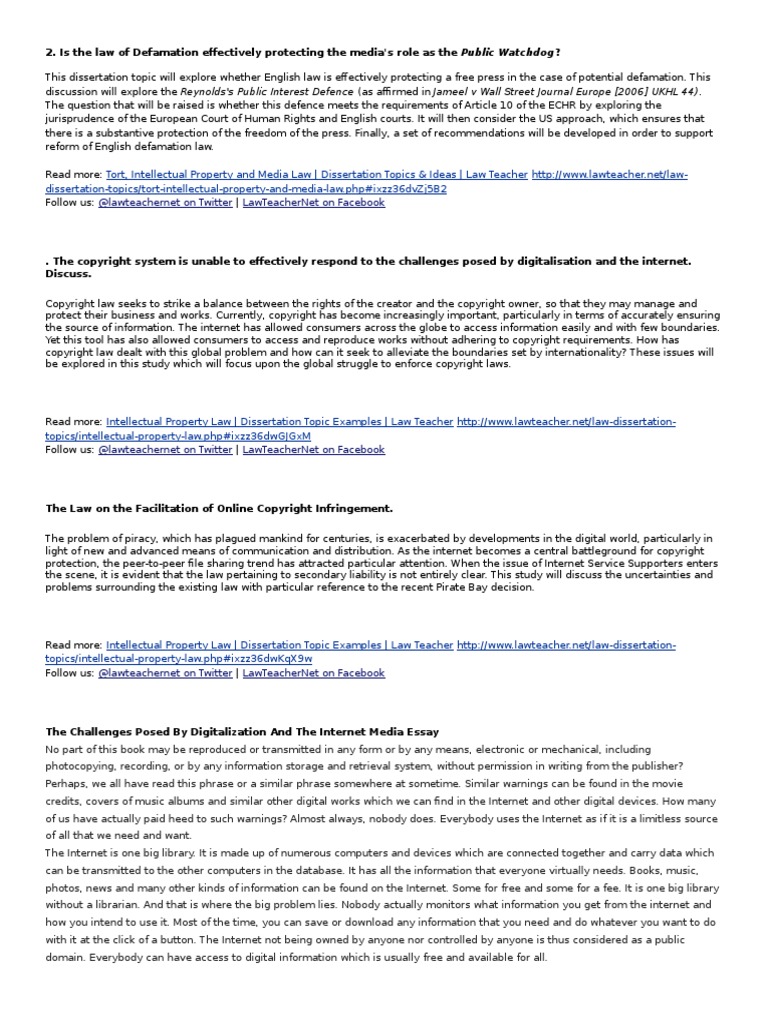 Avoiding Copyright Infringement in Your Dissertation or Thesis Copyright law protects "original works of authorship" that are "fixed in any tangible medium of expression." Legal use, without permission, of copyrighted work is limited to "fair use" of the work. Educational and research use is not necessarily "fair use", especially if the work is published, as your · Your thesis. By default, University of York postgraduate researchers hold the copyright to their original work in a PhD thesis. In the case of externally funded PhD studentships, funders are required to allow researchers to retain ownership of copyright (see Policy on Research Degrees / Regulation ) Our "Copyright Infringement" researchers are highly-educated specialists with impeccable research and writing skills who have vast experience in preparing doctoral-level research materials. Equipped with proper tools, statistical software, and sources of reference, we write dissertations and theses that are one-of-a-kind, innovative, accurate, and up-to-date